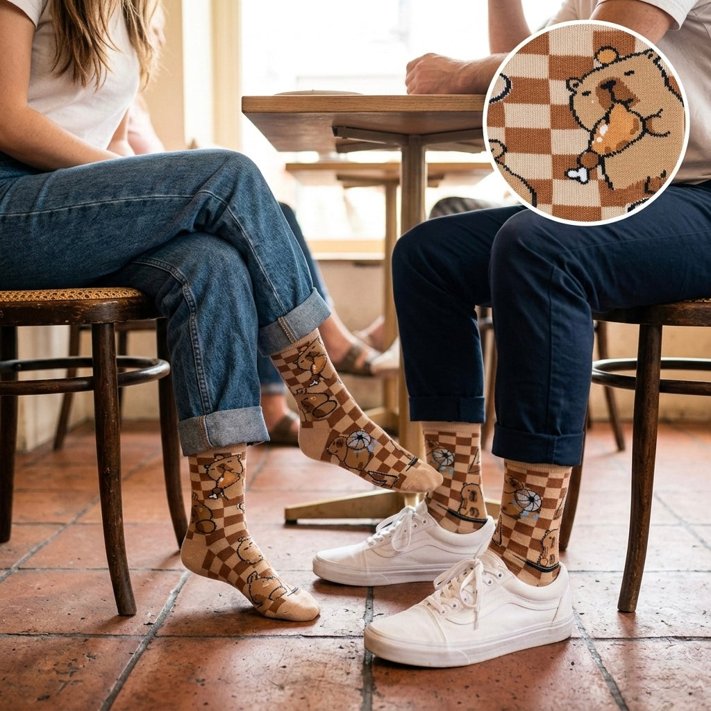 Udobne Capybara čarape donose osmijeh svakim korakom. Kvalitetan pamuk i presladak dizajn dabra u bež i smeđim tonovima pružaju savršenu udobnost za stopala veličine 36 do 44.