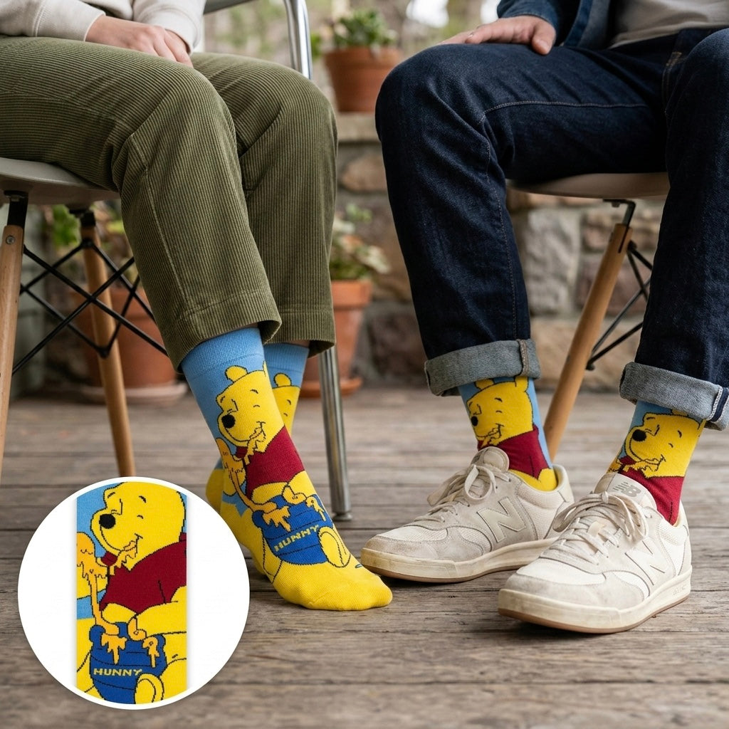 Oživite dječju radost uz žarke Winnie the Pooh čarape. Mekana pletena tkanina i hrabra grafika medvjedića s loncem meda pružaju vrhunsku udobnost za stopala veličine 36-46.