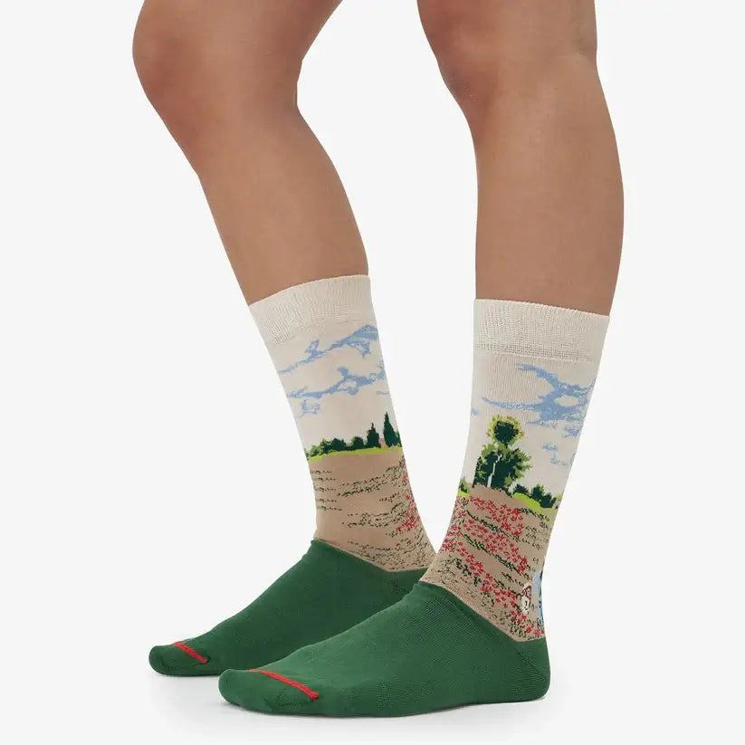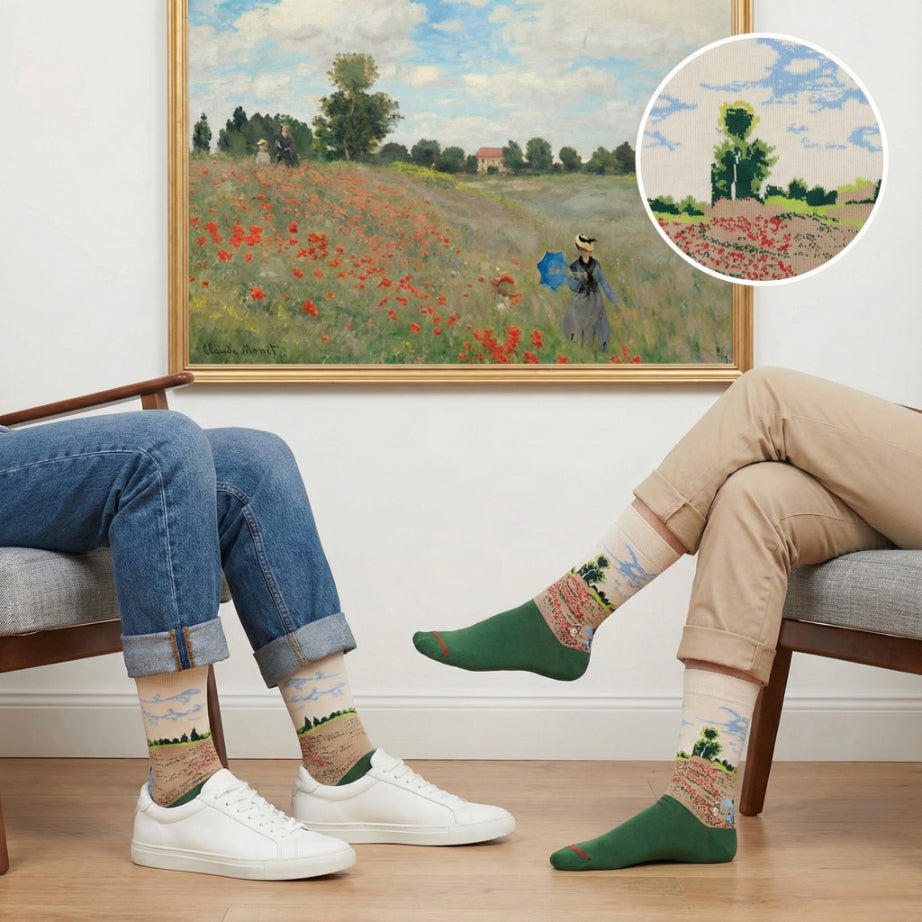 Zelene i bež čarape s printom polja maka kod Argenteuila Claudea Moneta
