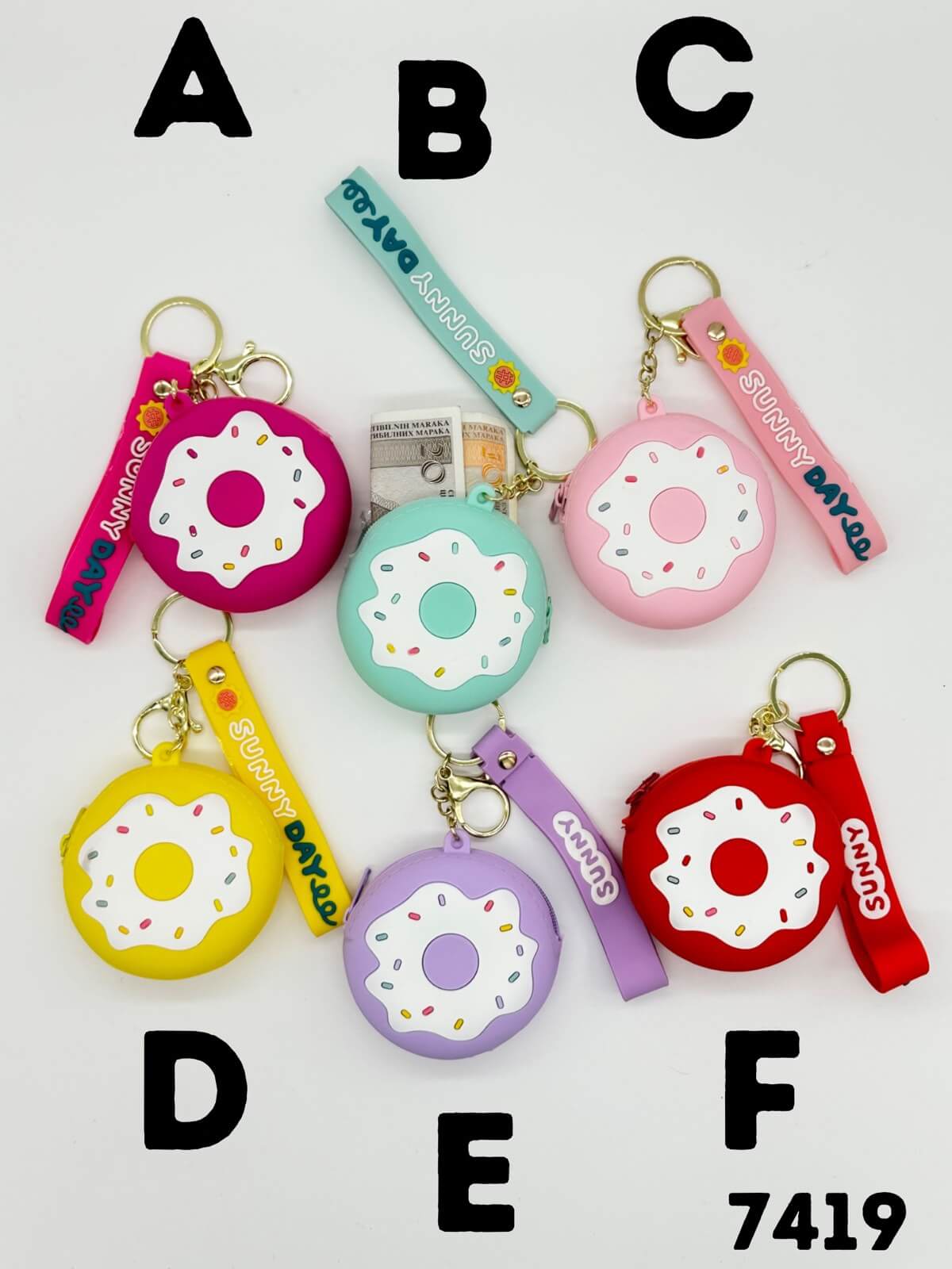 Otkrijte šarene donut privjeske koji služe kao 3D privjesak i novčanik, savršeni za dodavanje zabave i funkcionalnosti svakom novčaniku ili torbici.