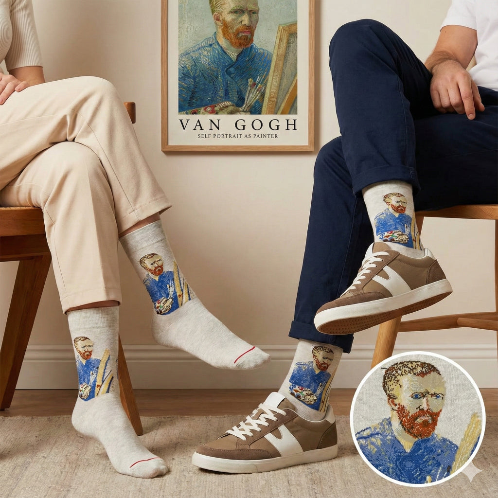 Bijele čarape s Van Goghovim autoportretom slikara u plavim i žutim potezima