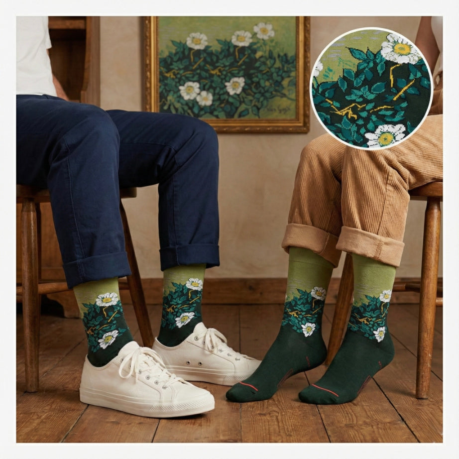 Ako ste ikada željeli čarape koje su jednako udobne kao zagrljaj medvjeda na proljetnoj livadi, onda su Vestsocks Unisex čarape ono što trebate! Napravljene od 80% pamuka, ove čarape pružaju osjećaj plišanog oblačića oko vaših stopala. Poliamid i elastin jamče dugotrajnost i fleksibilnost, kako bi vaša stopala mogla savladati sve izazove dana. Izrađene s ljubavlju u Turskoj, ove čarape donijet će vam komadić orijentalne radosti svaki put kad ih obujete. Klonite se dosadnih i običnih čarapa – Vestsocks poziva vas da zaronite u svijet cvjetnih uzoraka inspiriranih Goghovim Wild Roses kreacijama i otkrijete novu razinu stila i udobnosti.